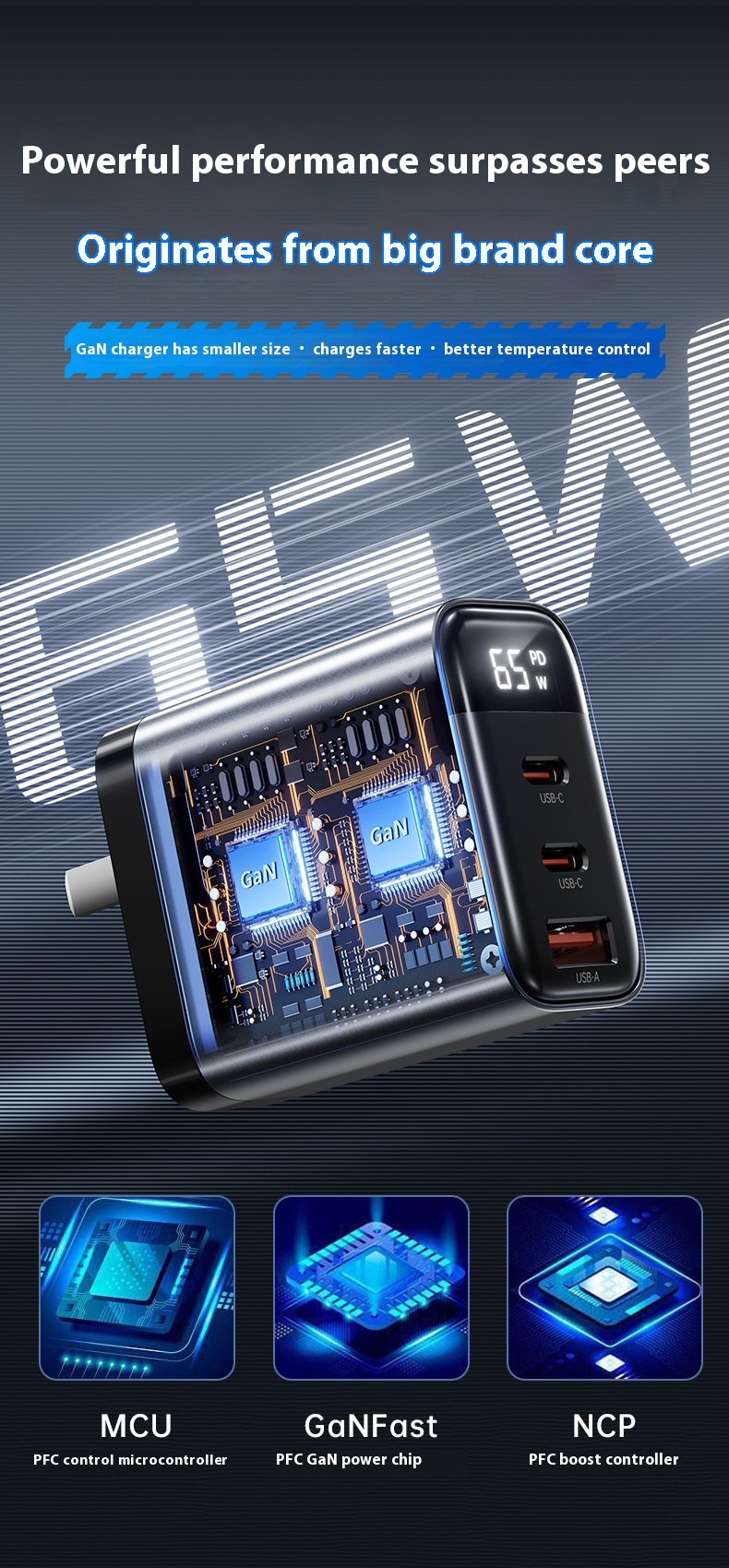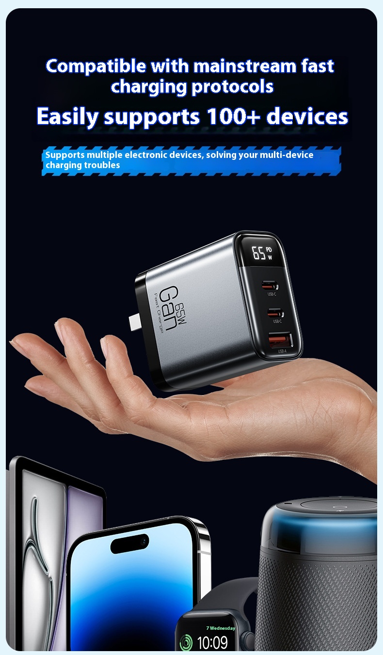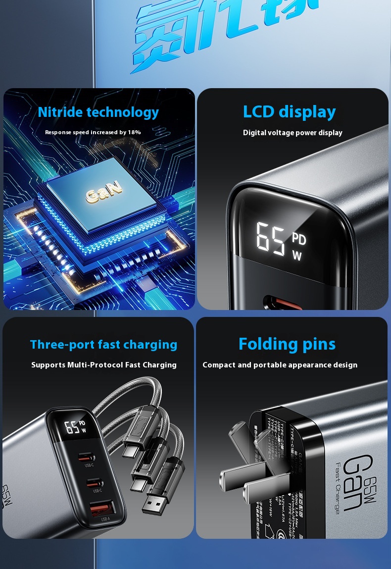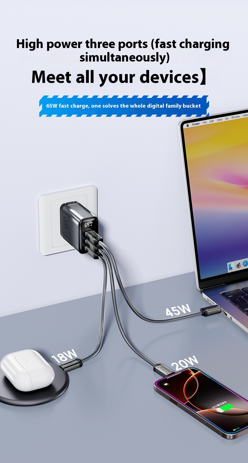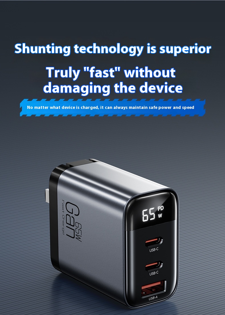 Gallium Nitride Three-port Charging Plug Smart Digital Display Mobile Phone Charger