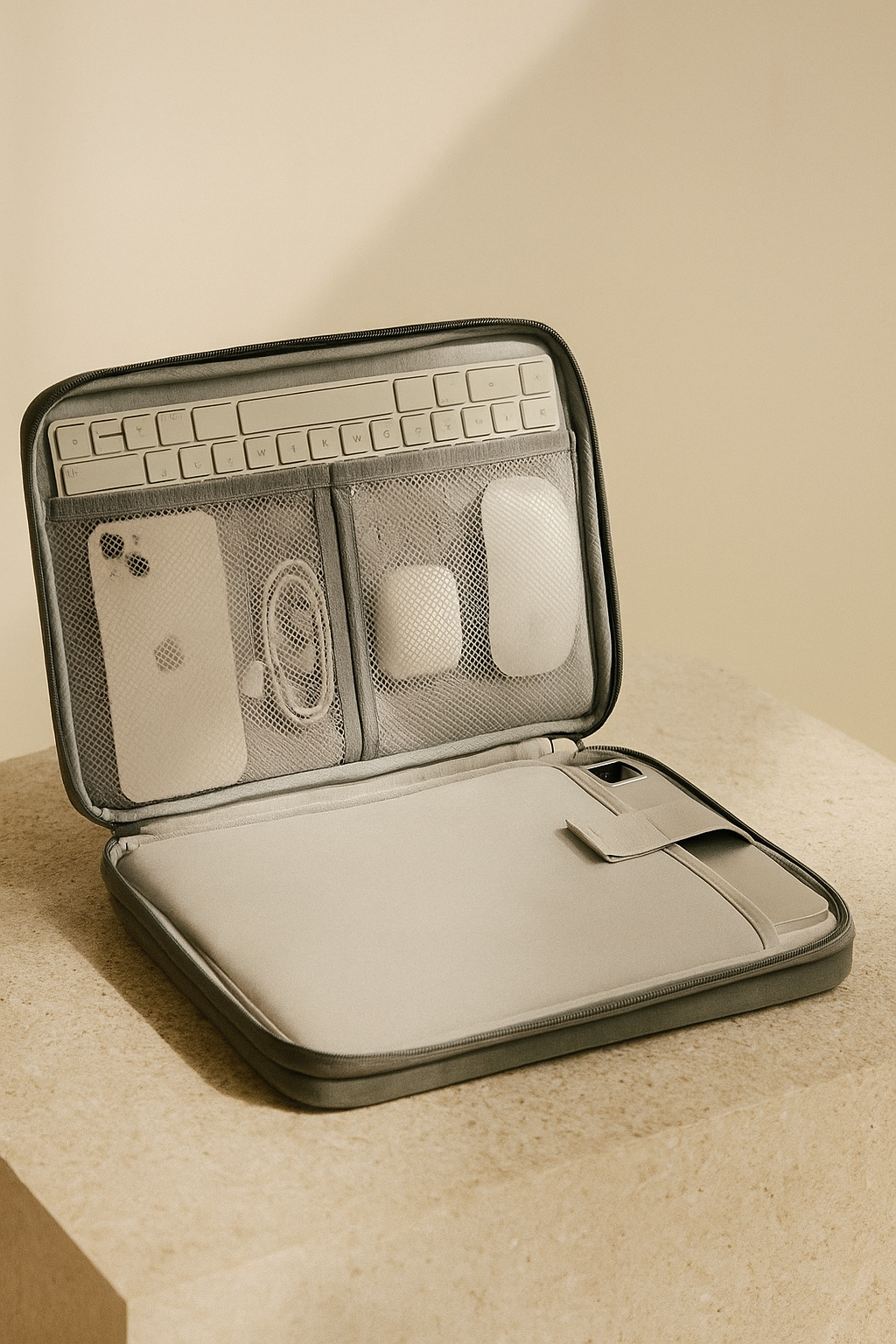 Son tissu en nylon haut de gamme protège efficacement contre les chocs et les rayures, tandis que son design fin se glisse facilement dans un sac ou une mallette sans prendre de place.